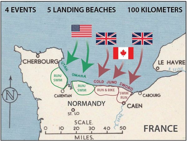 We are a registered 501c(c)(3) nonprofit seeking to honor the service and the sacrifice of those who landed on the shores of northern France on June 6th 1944, with a unique series of athletic events contested over four days along the Normandy coast. With these events, we will raise awareness of the history of that impactful day.